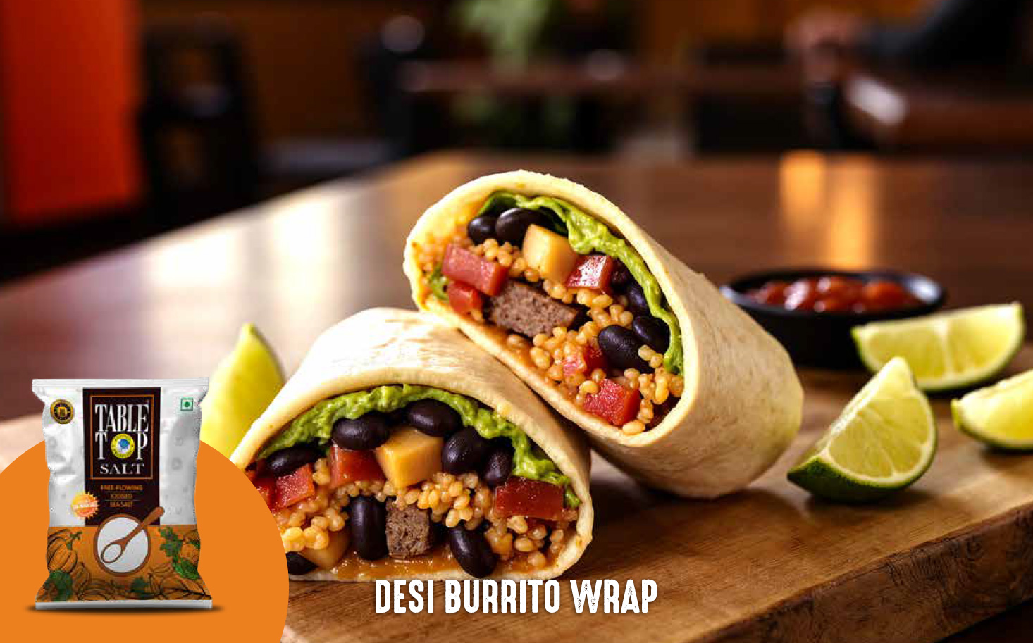 Looking for a lunch that’s quick, tasty and packed with nutrition? This Indian-style burrito wrap is your answer. It’s made using simple, wholesome ingredients from your kitchen and seasoned with a mindful pinch of salt that does more than just enhance flavour.